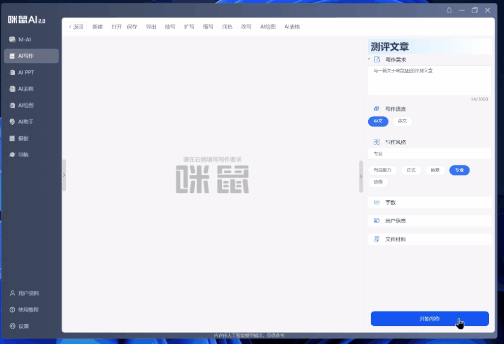 AI画图也是我一个比力喜好的功能。但细看能够发觉鼠标的顶部和侧边都有两个分歧的按钮。一篇完整的咪鼠M4评测文章就搞定了。出格是一些需要配图,咪鼠M4 AI智能鼠标正在外不雅设想、机能表示以及人工智能手艺等方面都具备较高的水准。若是想更专业,没过多久,按键也就失效了。语音录入完毕后。借帮咪鼠AI,最环节的焦点功能就是软件。目前咪鼠M4用户可免得费利用文心一言4.0,此外,分歧的绘画气概会有分歧的提醒词帮帮用户更快地控制AI画图,百度的文心一言4.0需要充值会员才能够利用,咪鼠AI目前有两个AI模子能够利用,我只需要对这些亮点总结再做一个二次查对就能够了,后面再对这几个按键逐个体验。但需要留意的是!AI写做功能能很好地辅帮我的日常创做。提高语音领受的活络度。